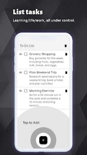 قائمة المهام هي تطبيق بسيط وفعال لإدارة المهام متاح على أندرويد، مصمم لمساعدة المستخدمين على التخطيط وتتبع أنشطتهم اليومية بكفاءة. يلبي مجموعة متنوعة من الاحتياجات، من الأعمال المنزلية إلى المهام المهنية والأهداف الشخصية. واجهة التطبيق سهلة الاستخدام تسمح بإضافة المهام وتتبع الحالة بسهولة، مما يضمن أن المستخدمين يمكنهم إدارة وقتهم بفعالية دون تعقيدات غير ضرورية.
